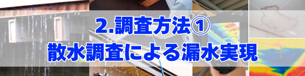 今回も前回に引き続き、実際に水をかけて漏水を再現する「散水調査」と温度変化を可視化できる「サーモグラフィー調査」を組み合わせて、雨漏りの経路を詳しく確認しました。