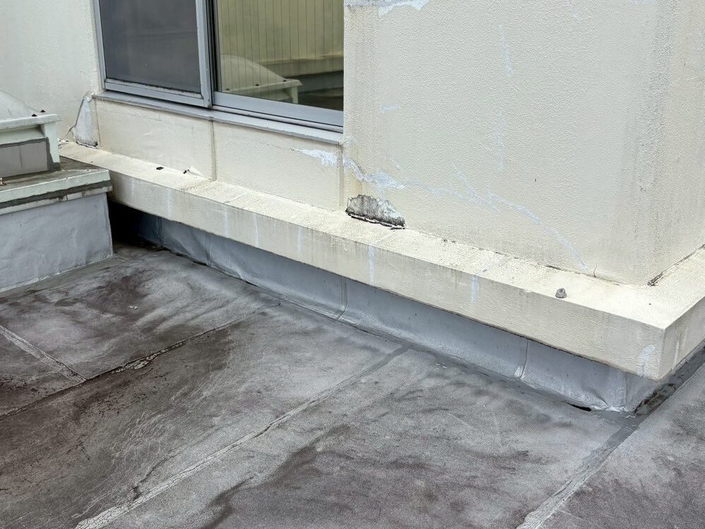 屋上の立ち上がり部分では、防水シートの膨れが確認されました。