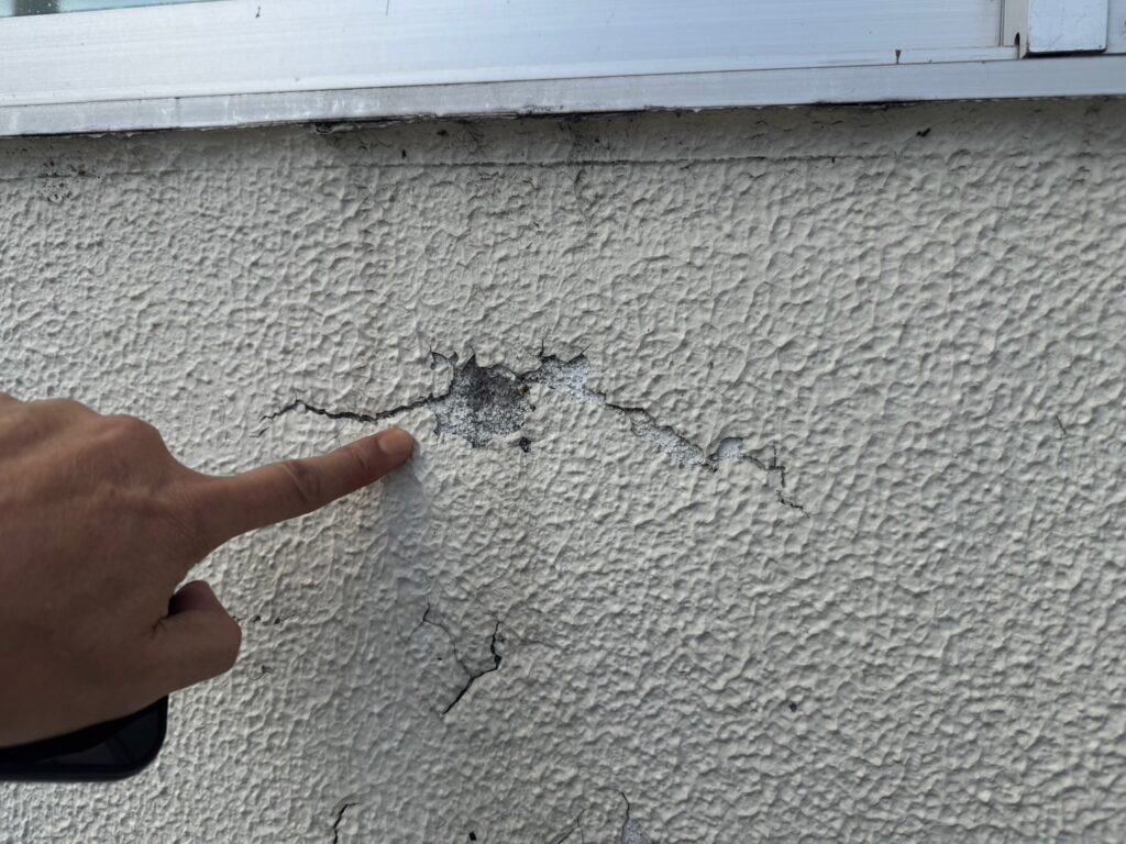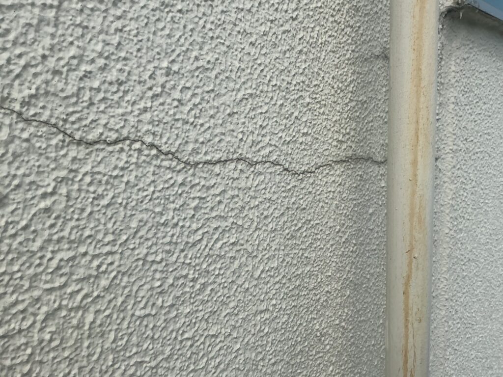 また、外壁の一部では線状に長く続くクラックも確認され、