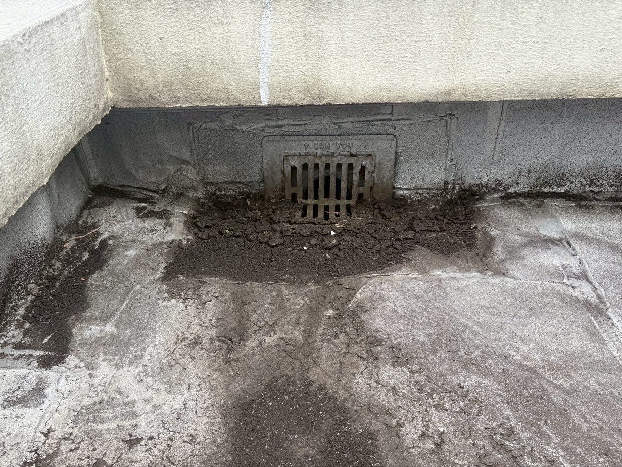 ドレンが詰まると排水ができず、水たまりが増え、防水層の劣化につながります。
