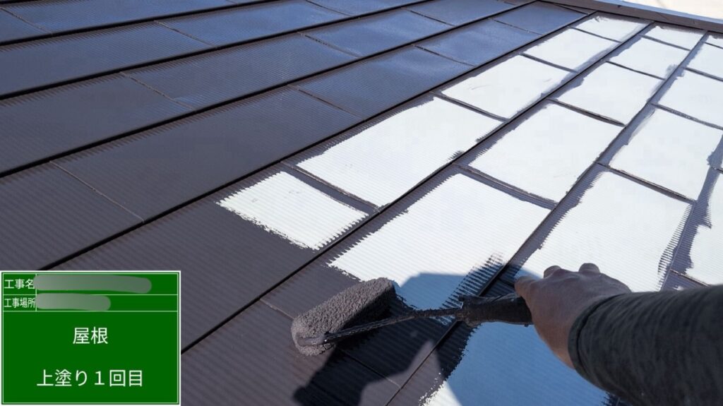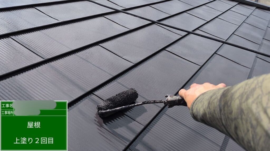 下塗りでは、屋根材と塗料を密着させるための下地調整を行います。