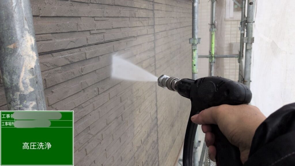 外壁も屋根と同様に、高圧洗浄で汚れや劣化した塗膜を除去します。