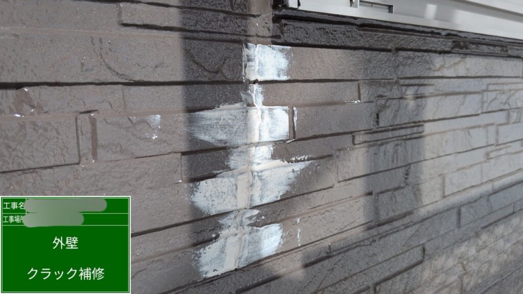 外壁に確認されたひび割れは、専用材料を用いて補修を行いました。
