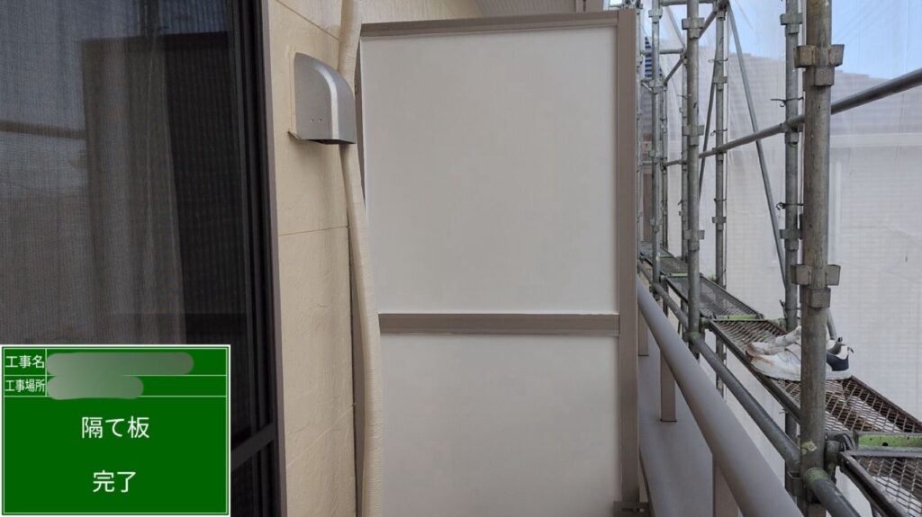 隔て板の塗装完了により、共用部分も明るく清潔感のある仕上がりとなりました。